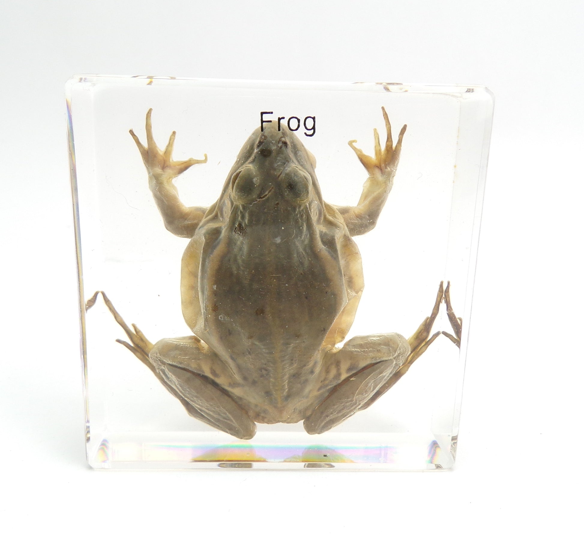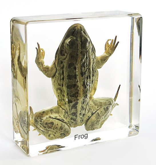 A real frog cast in epoxy. This will be shipped in a white box and wrapped in protective foil.