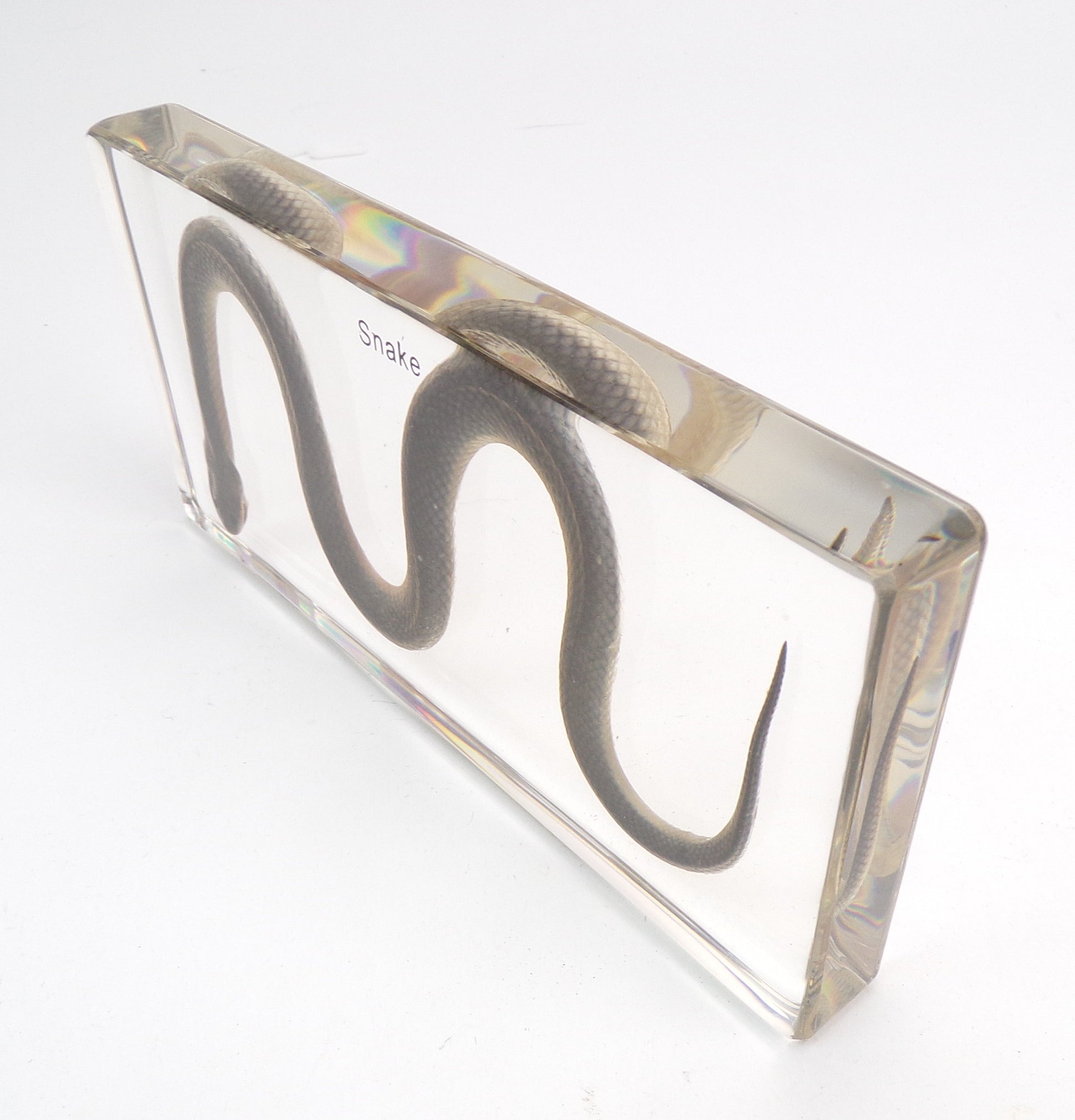Un serpente immerso nell'epossido. Questo verrà spedito in una scatola bianca e confezionato in pellicola protettiva.