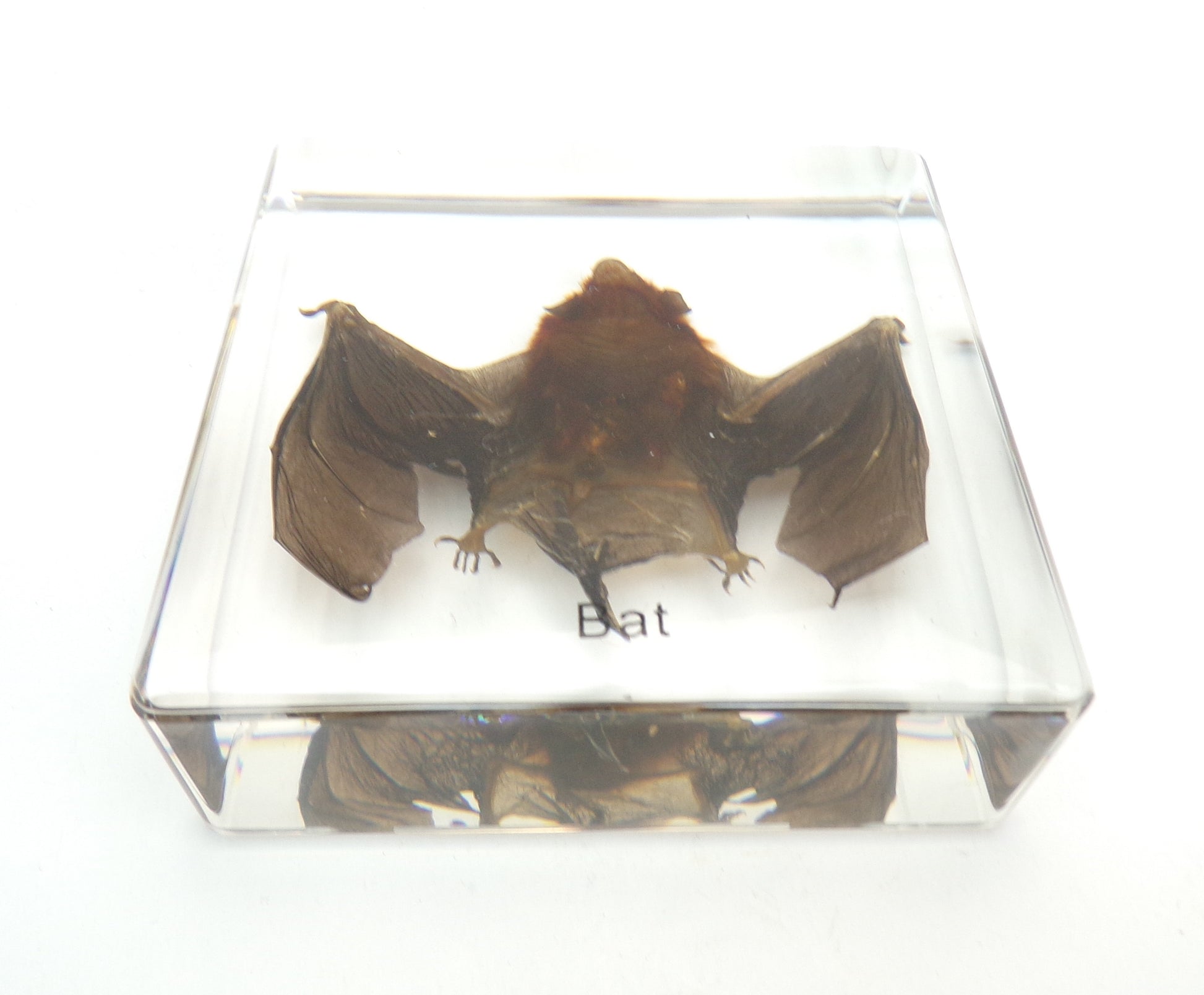 Un vero pipistrello immerso nell'epossido. Questo verrà spedito in una scatola bianca e confezionato in pellicola protettiva.