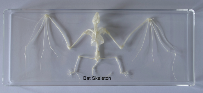 A real bat skeleton cast in epoxy. This will be shipped in a white box and wrapped in protective foil.